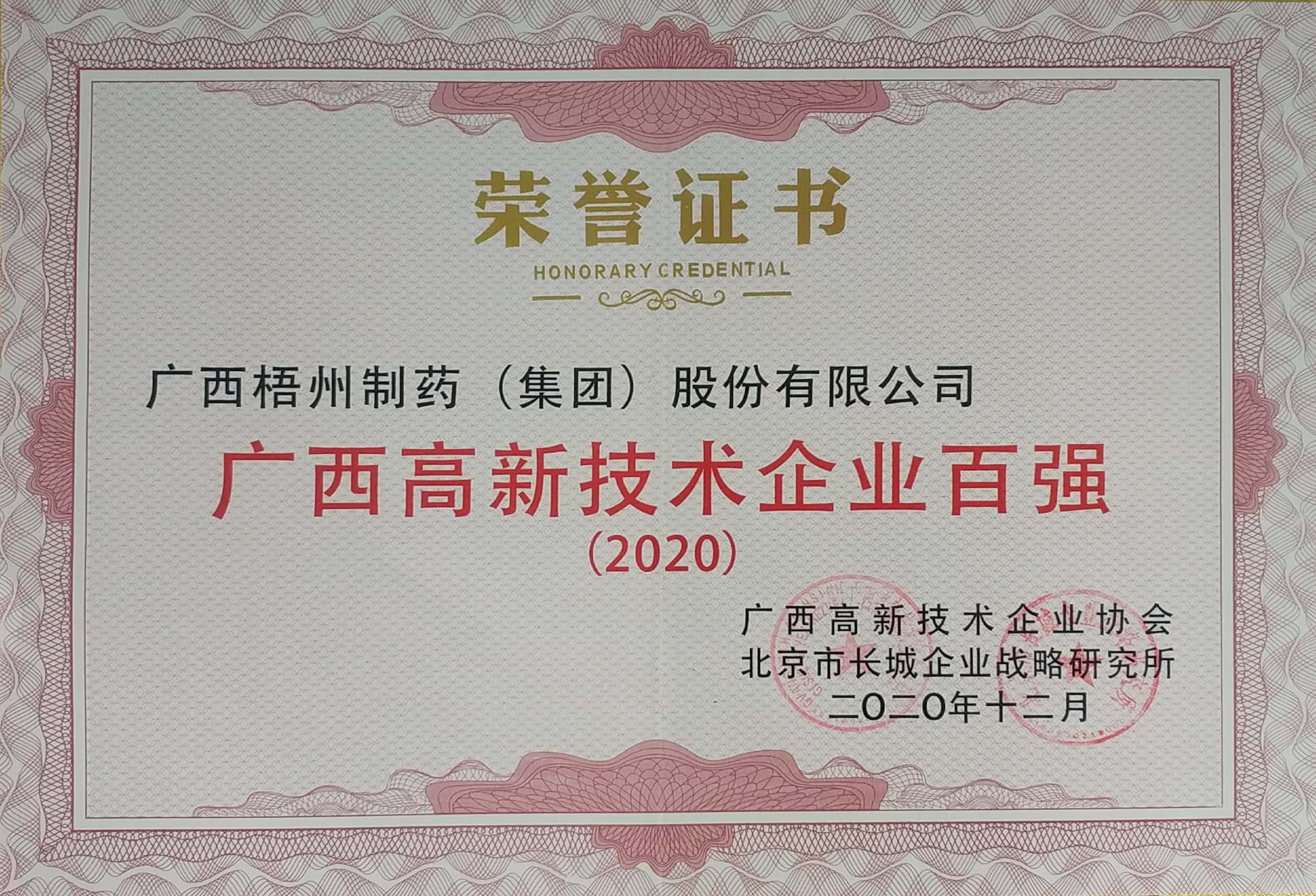 榮獲2020年廣西高新技術(shù)企業(yè)百強(qiáng)稱號