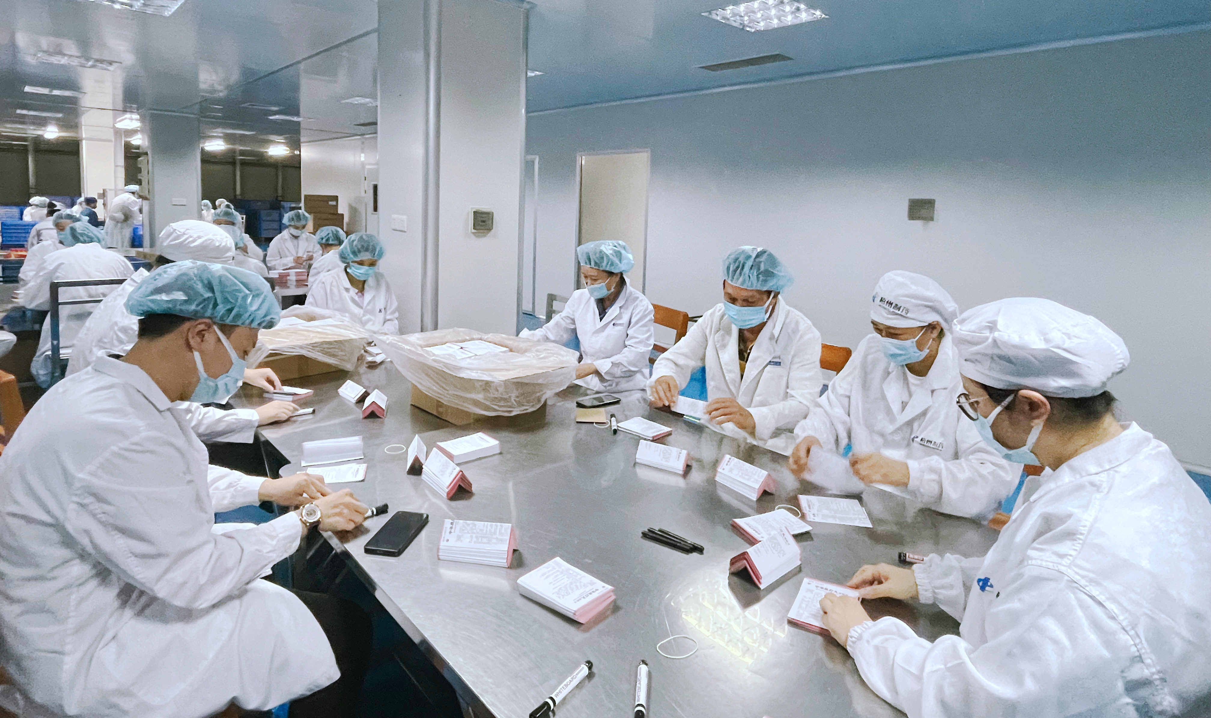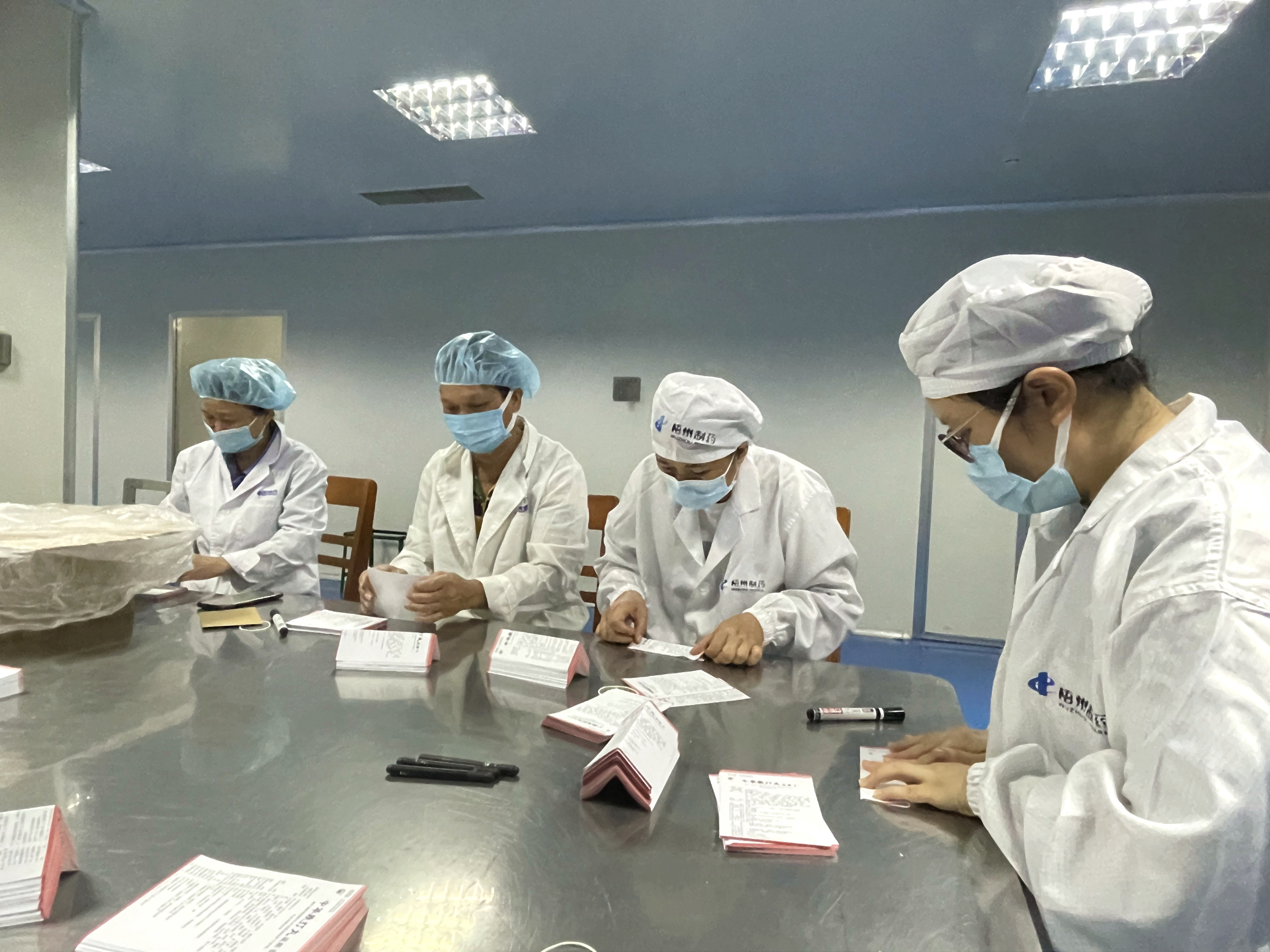 每天下午4點(diǎn)過后,志愿者們都會(huì)來到固體車間,穿上白大褂、戴上帽子、鞋套、手套,變身一線生產(chǎn)工人,在專業(yè)師傅的指導(dǎo)下,由一開始的手忙腳亂,到后來的得心應(yīng)手,井然有序地開展中華跌打丸入托、入籃、折說明書等工序工作,現(xiàn)場(chǎng)呈現(xiàn)出一片熱火朝天、你追我趕的勞動(dòng)場(chǎng)面,志愿者的到來使中華跌打丸的日產(chǎn)量得到了提升。