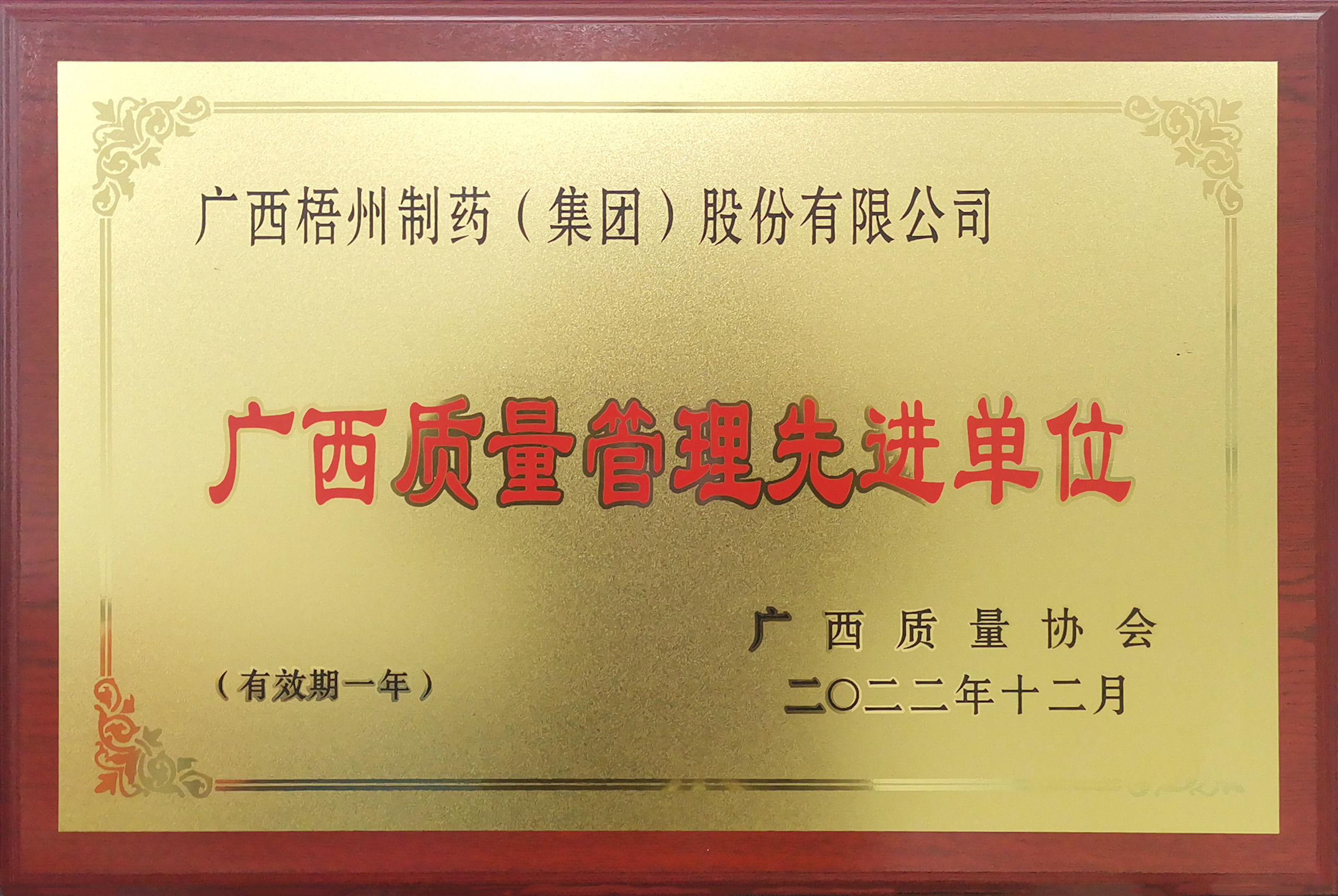 廣西梧州制藥(集團)股份有限公司榮獲2022年度廣西質(zhì)量管理先進單位