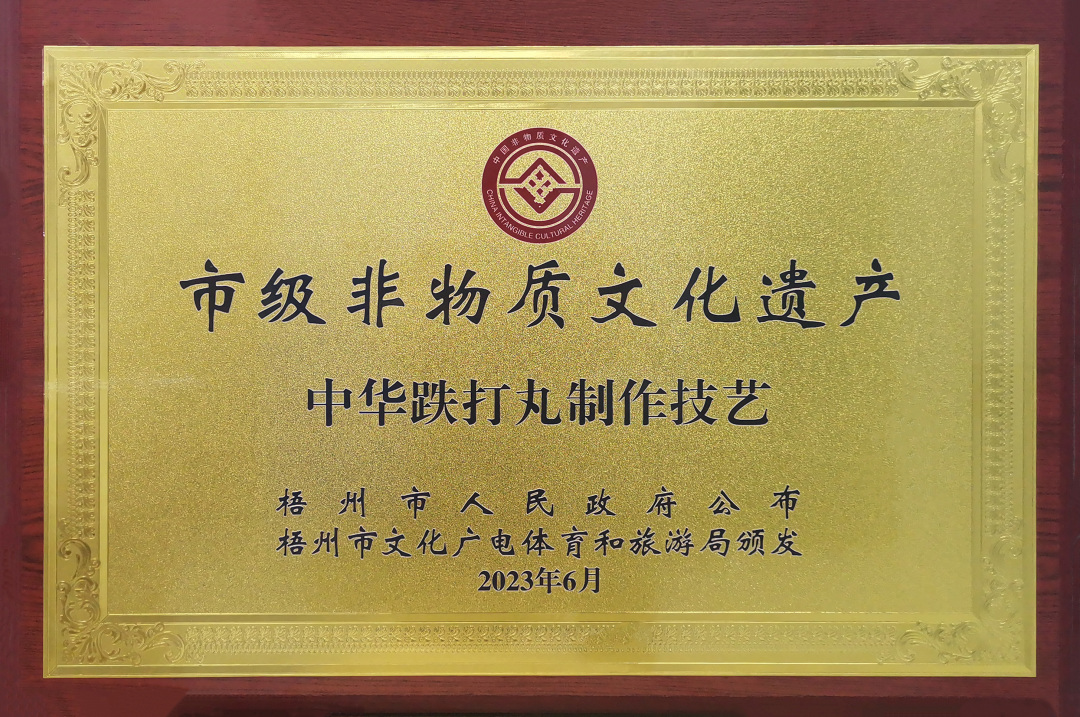 近日,在梧州市文化廣電體育和旅游局主辦的2023年“文化和自然遺產(chǎn)日”梧州市主會場宣傳展示活動中,梧州制藥中華跌打丸制作技藝獲授牌匾,成功入選梧州市第六批非物質(zhì)文化遺產(chǎn)代表性項目名錄。