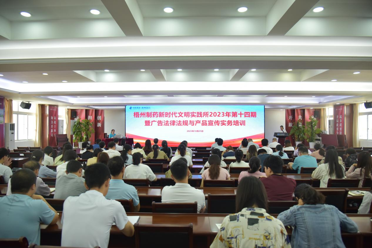 近日,梧州制藥在公司辦公樓六樓一號會議室舉辦新時代文明實踐所2023年第十四期暨廣告法律法規(guī)與產(chǎn)品宣傳實務培訓,特邀梧州市市場監(jiān)督管理局廣告監(jiān)督管理科科長謝艷娟前來授課,梧州制藥各部門、各車間,以及集團公司和各兄弟企業(yè)相關人員共計90余人參加培訓。