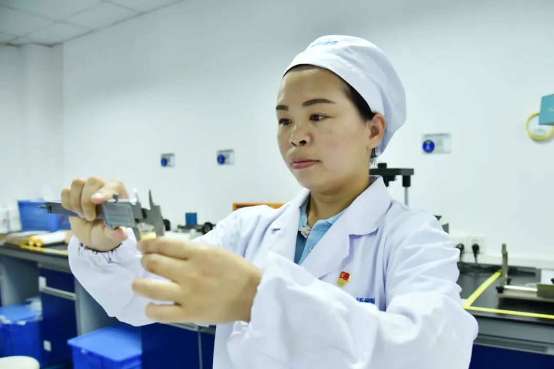 “成為‘匠人’不難,具有‘匠心’就不易。不僅要在工作上耐得住寂寞,能夠承受時(shí)間的考驗(yàn), 深耕行業(yè)積累經(jīng)驗(yàn),而且還需要細(xì)心謹(jǐn)慎,善于發(fā)現(xiàn)那些不起眼的細(xì)枝末節(jié)?!彼锌溃骸熬拖裰坝袕S家來(lái)安裝生產(chǎn)線時(shí),雖然都是拼裝機(jī)器的步驟,但是安裝時(shí)會(huì)忽略機(jī)器在生產(chǎn)時(shí)對(duì)產(chǎn)品的覆蓋率、完整度等問(wèn)題,這樣就會(huì)導(dǎo)致出現(xiàn)不必要的損耗和浪費(fèi)?!?有時(shí),為了解決一個(gè)生產(chǎn)上的難題,雷潔萍會(huì)拿著溫度計(jì),在藥液貯罐前一待就是幾個(gè)小時(shí),非要拿出個(gè)精準(zhǔn)配比才罷休。工匠精神,在雷潔萍身上得到了最美的詮釋。