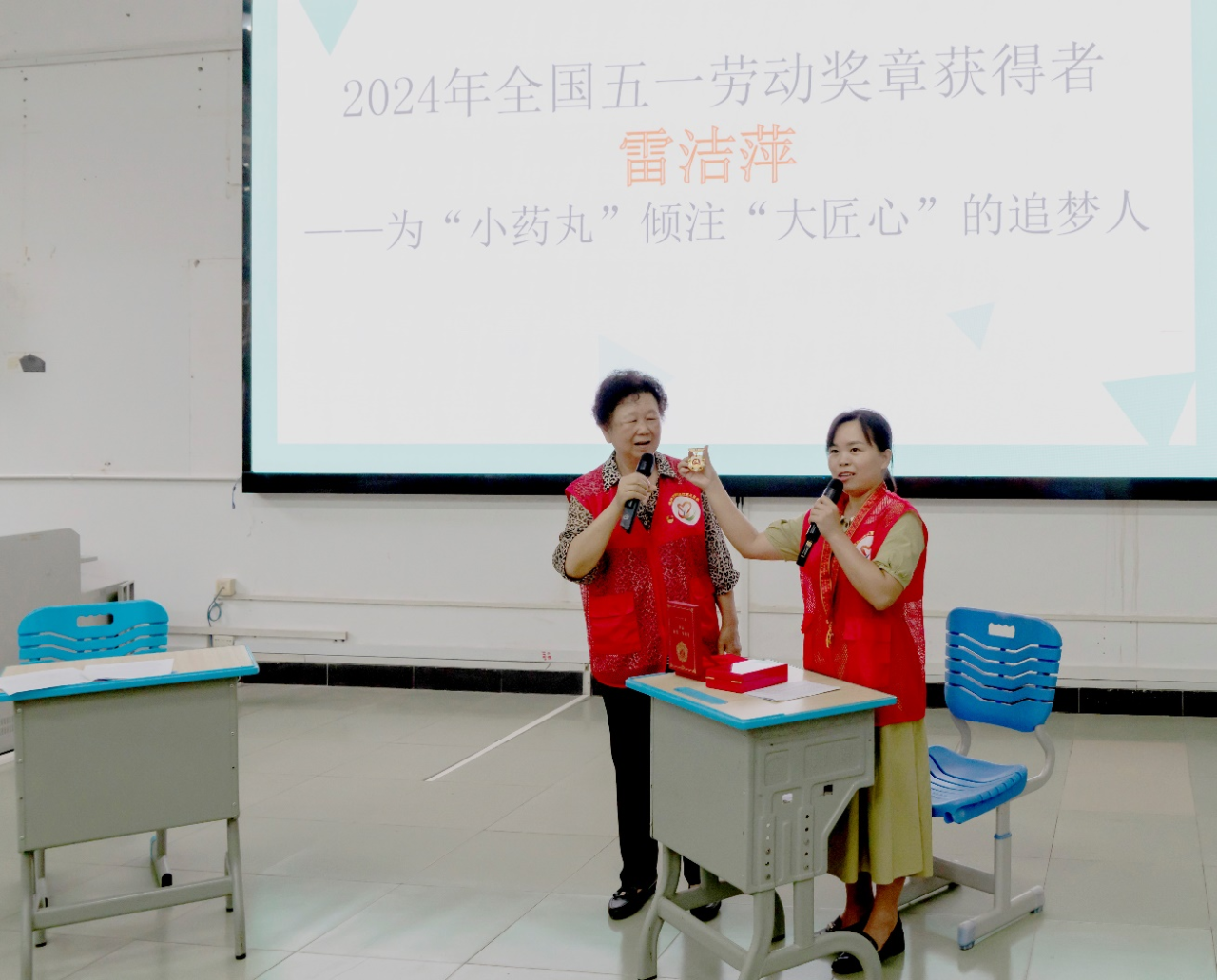 全國(guó)五一勞動(dòng)獎(jiǎng)?wù)?、“廣西工匠”獲得者、自治區(qū)級(jí)非物質(zhì)文化遺產(chǎn)“中華跌打丸”制作技藝第五代傳承人雷潔萍結(jié)合學(xué)生時(shí)代的求學(xué)故事、工作之后的奮斗歷程,用樸實(shí)真摯的語(yǔ)言,以自己二十多年的成長(zhǎng)軌跡為脈絡(luò),向在座師生講述了自己匠心筑夢(mèng)的心路歷程,詮釋了新時(shí)代勞模精神、勞動(dòng)精神和工匠精神的內(nèi)涵與要求,引導(dǎo)廣大學(xué)生成為有理想、有信念、有擔(dān)當(dāng)?shù)男聲r(shí)代好少年。
