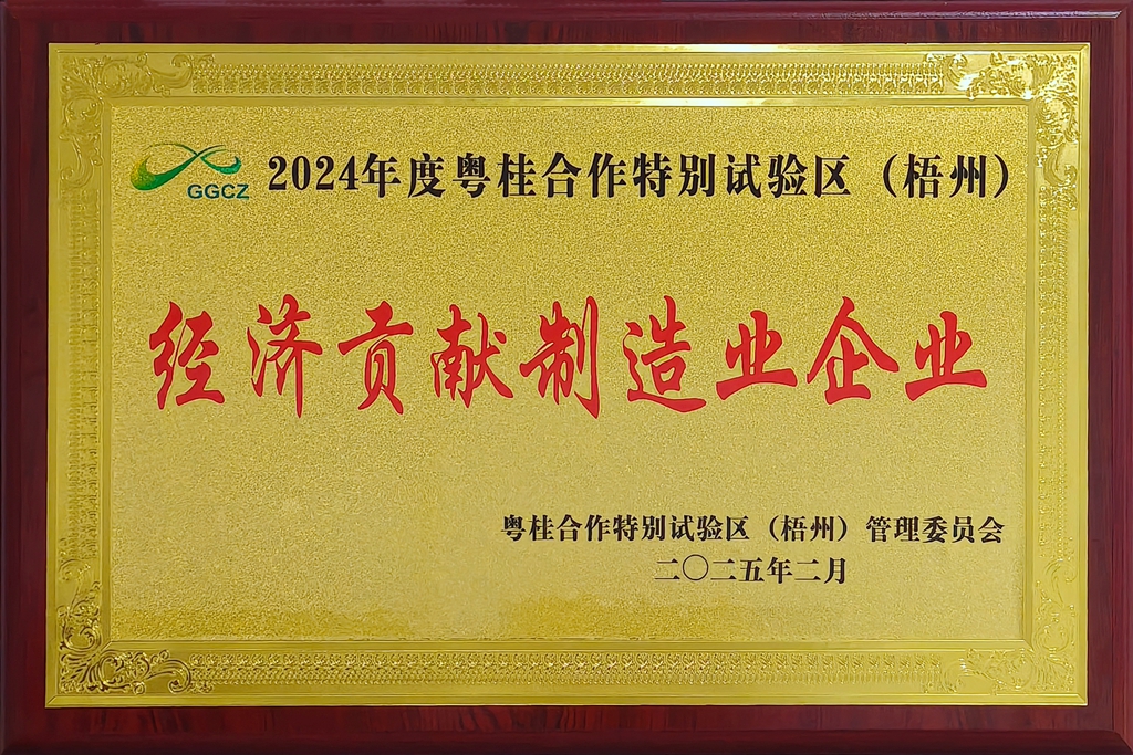 廣西梧州制藥(集團(tuán))股份有限公司獲評2024年度粵桂合作特別試驗(yàn)區(qū)(梧州)經(jīng)濟(jì)貢獻(xiàn)制造業(yè)企業(yè)”