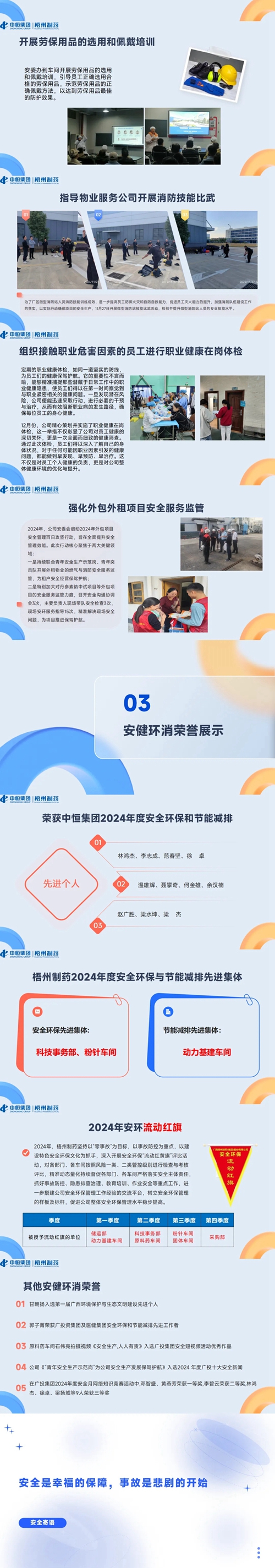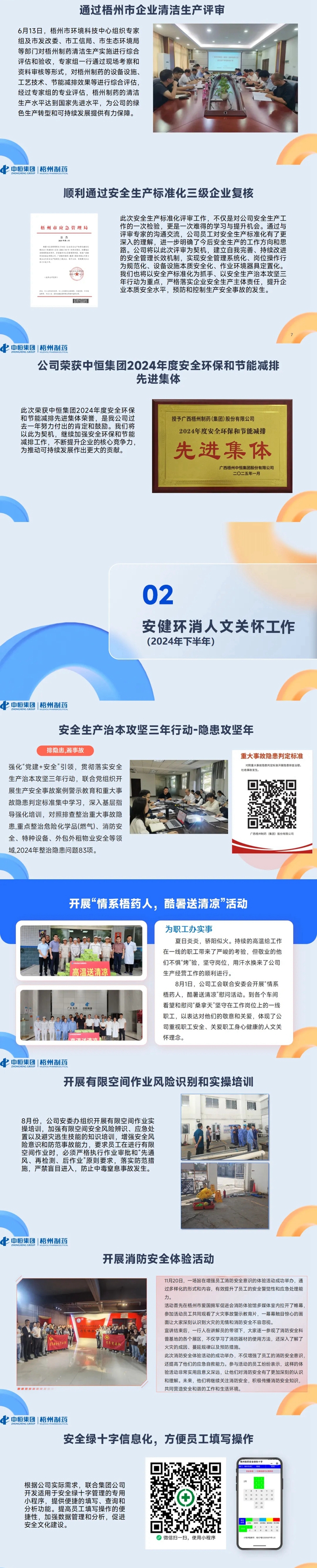 下面,讓我們共同回顧梧州制藥2024年度安健環(huán)消情況,了解這一年來梧州制藥在安全環(huán)保工作上的貢獻(xiàn)與作為。
