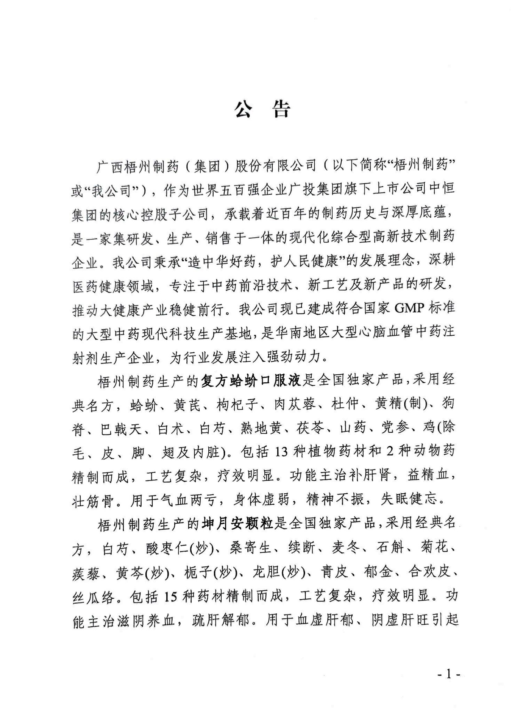 復(fù)方蛤蚧口服液、坤月安顆粒招選公告