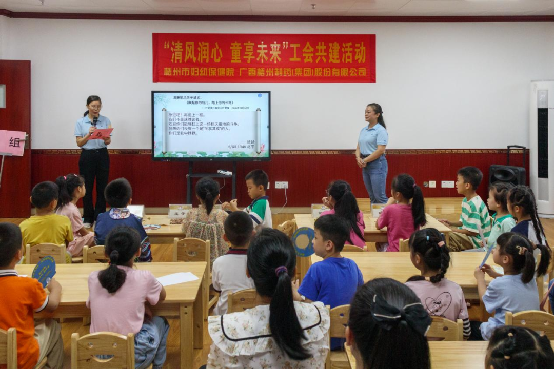 在六一國際兒童節(jié)來臨之際,梧州制藥與梧州市婦幼保健院攜手,共同策劃了一場別開生面的“清風(fēng)潤心 童享未來”主題活動。為100多組職工家庭搭建起親子互動的溫馨平臺,讓傳統(tǒng)文化與現(xiàn)代科普在歡聲笑語中交融。這份由醫(yī)企聯(lián)動共同送出的特殊“六一”禮物,不僅承載著對職工子女的關(guān)愛,更傳遞著對職工家庭幸福的人文關(guān)懷。