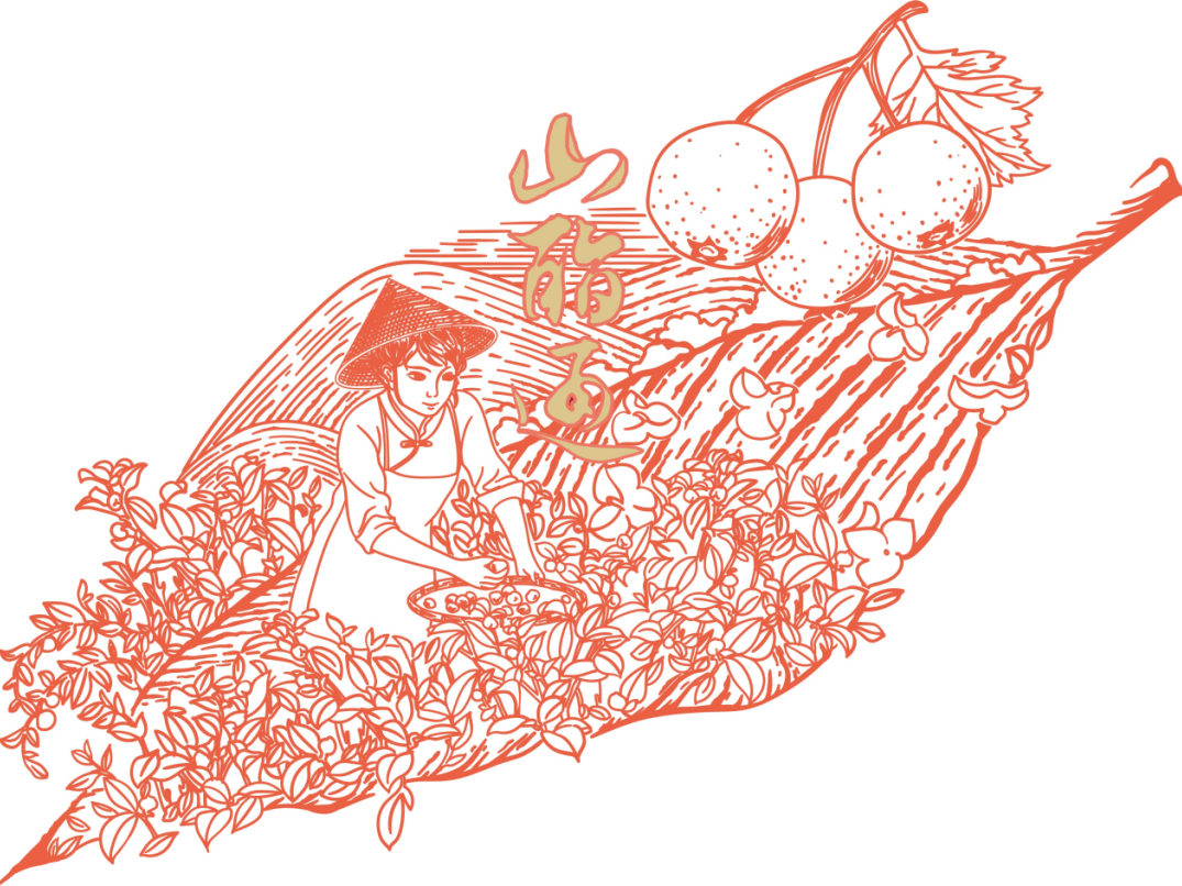 甘露凝香,一葉知秋,云山好物,百草凝珍。作品通過中國傳統(tǒng)線描畫,將公司新產(chǎn)品山酯通茶飲的產(chǎn)品特色凝聚于畫作。構(gòu)思來源于產(chǎn)品所使用的原料均取自秋天高山植物提取物的產(chǎn)品特性,將高山、茶園、果實和采摘勞作場景濃縮于一秋葉之中。圖中遠山層巒疊嶂,如一幅寫意水墨徐徐展開,近景茶園蒼翠,采茶女素手纖纖喜悅勞作,層次分明,虛實相生,疏密得當(dāng),精妙構(gòu)圖詮釋了產(chǎn)品采擷山野醇厚,醞釀歲月回甘之特性。