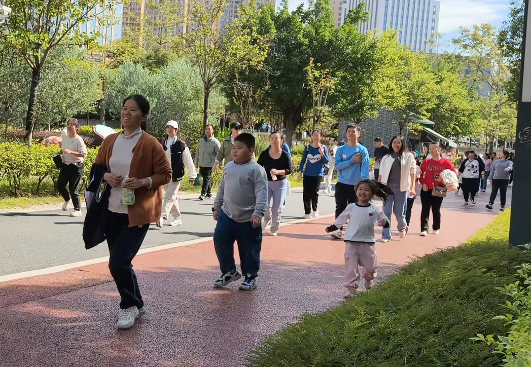 游戲環(huán)節(jié)結(jié)束后,工會(huì)組織開展了親子環(huán)湖健走活動(dòng)。50余組家庭攜手出發(fā),沿澄澈的玫瑰湖畔漫步前行。為保障活動(dòng)安全有序,工會(huì)提前勘察路線,沿途設(shè)置3個(gè)補(bǔ)給站,志愿者貼心提供飲用水和小食品。家長(zhǎng)與孩子們或緩步交談,或駐足賞景,或拍照留念,將湖畔的美景與親子的笑顏一一定格,歡聲笑語縈繞在整個(gè)環(huán)湖路上。