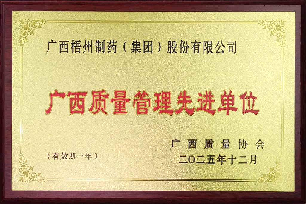 廣西梧州制藥(集團(tuán))股份有限公司獲評(píng)2025年廣西質(zhì)量管理先進(jìn)單位