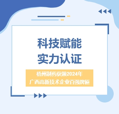 科技賦能實力認證梧州制藥獲頒2024年廣西高新技術企業(yè)百強牌匾近日,標志著“2024年廣西高新技術企業(yè)百強”榮譽的官方牌匾,正式送達廣西梧州制藥(集團)股份有限公司(以下簡稱:梧州制藥)。這不僅為此次評選畫上圓