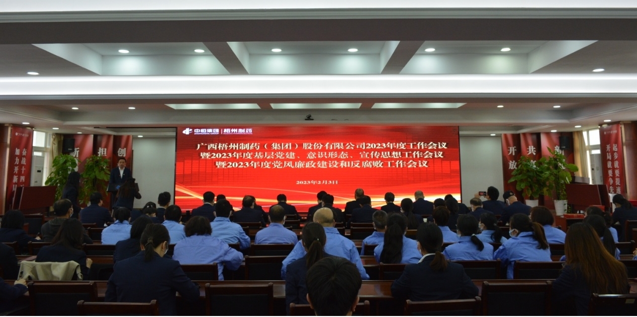 2月3日,梧州制藥召開2023年度工作會(huì)議暨2023年度基層黨建、意識(shí)形態(tài)、宣傳思想工作會(huì)議暨2023年度黨風(fēng)廉政建設(shè)和反腐敗工作會(huì)議。會(huì)議以習(xí)近平新時(shí)代中國(guó)特色社會(huì)主義思想為指導(dǎo),深入學(xué)習(xí)貫徹黨的二十大精神,全面
