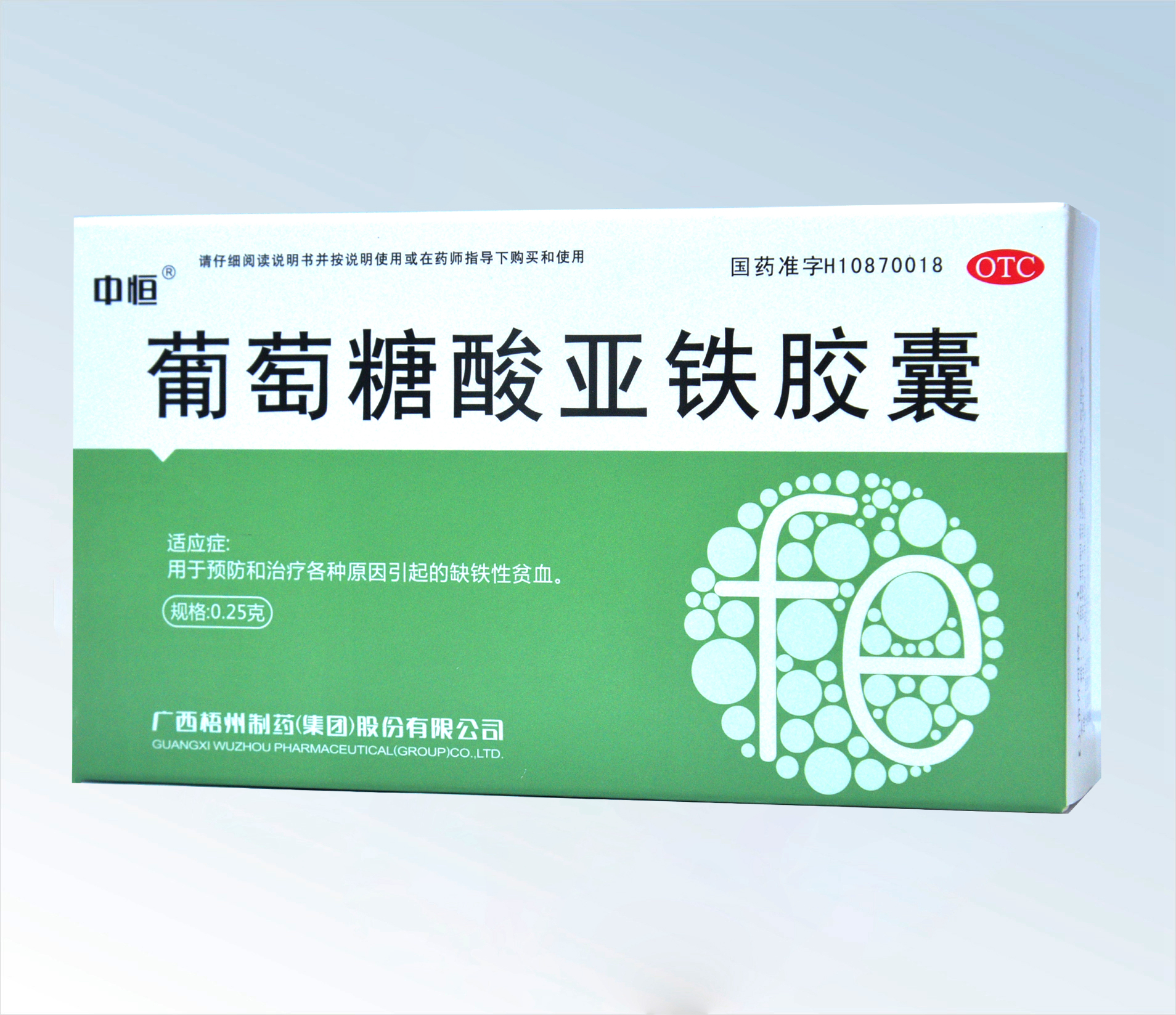 藥品成分本品每粒含葡萄糖酸亞鐵0.4克。 輔料為二氧化硅、硬脂酸鎂。 分 子 式:C12H22FeO14·2H2O功能主治用于治療各種原因引起的缺鐵性貧血。產(chǎn)品優(yōu)勢中恒牌、效果好